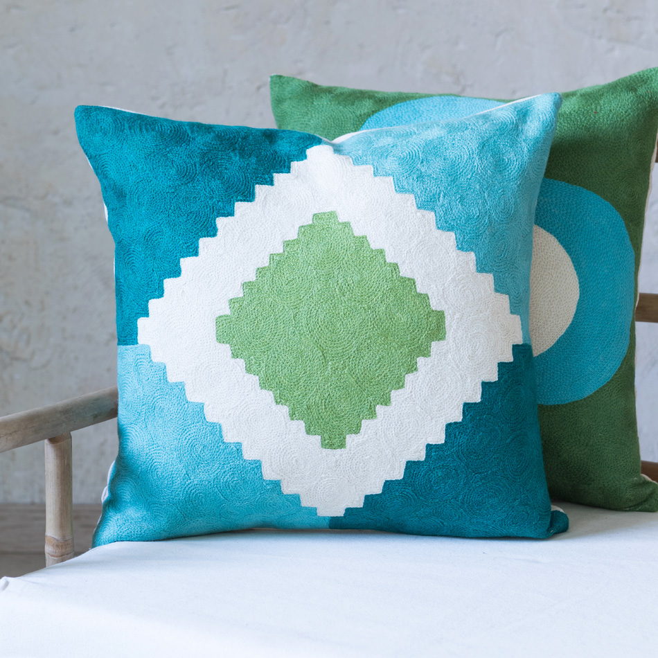FREYA CHAINSTITCH CUSHION GREEN 40×60
