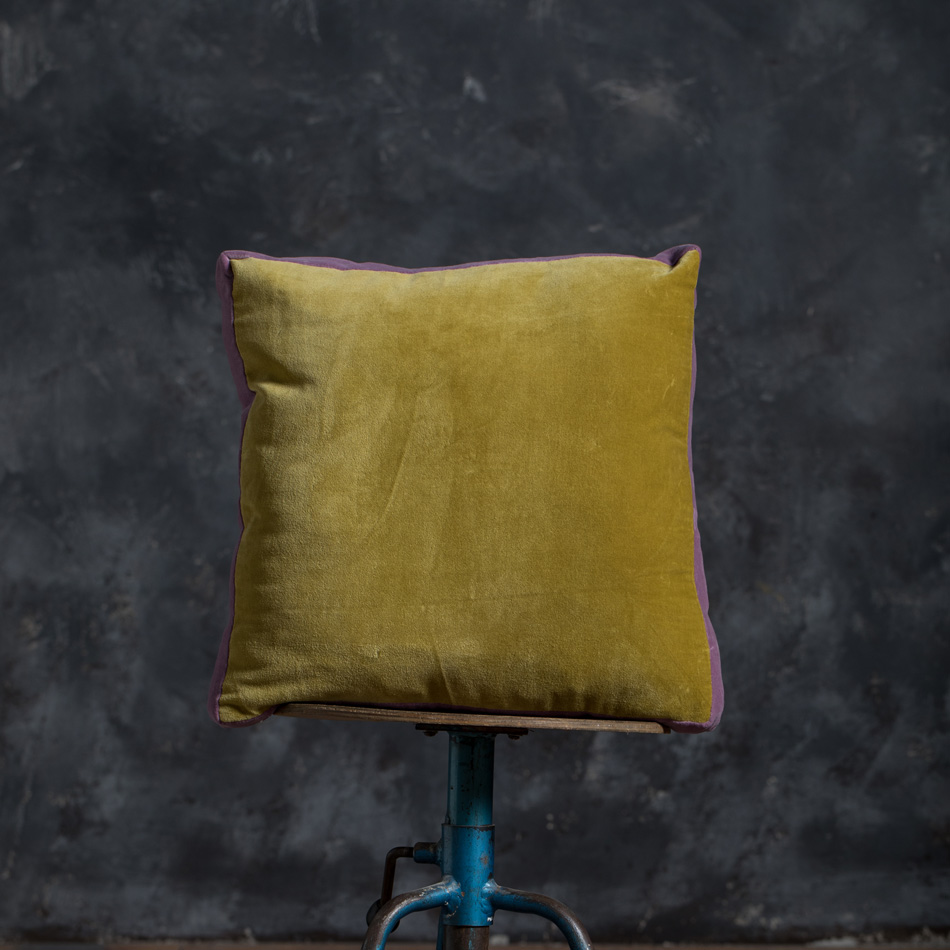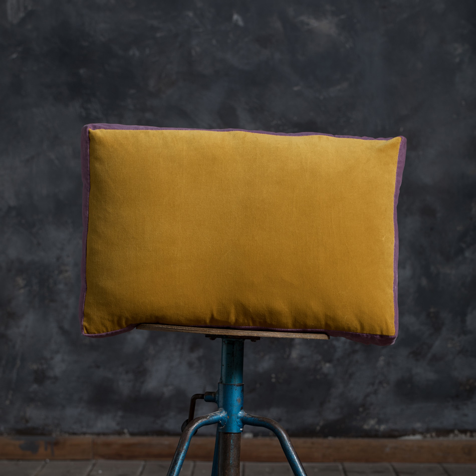 MUSTARD BICOLOR TRIM VELVET CUSHION 40X60