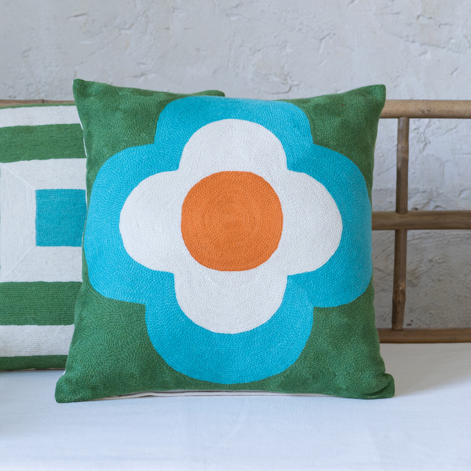 WALDO CHAINSTITCH CUSHION GREEN 45×45
