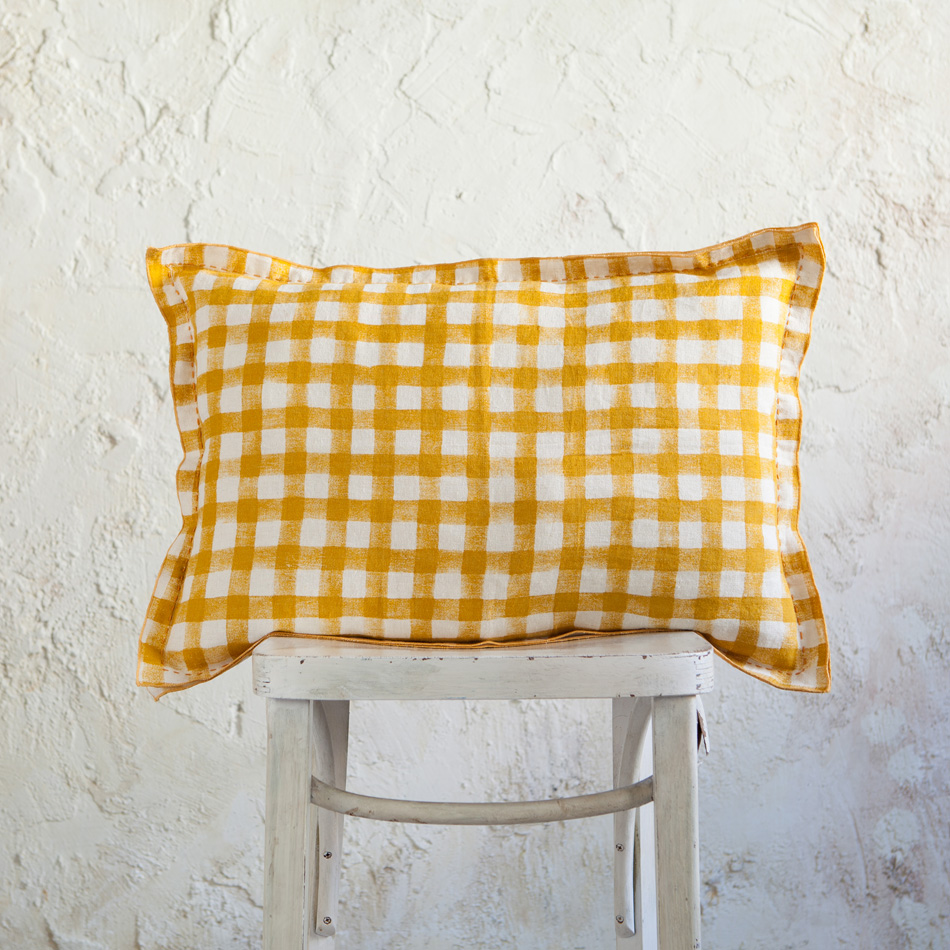GINGHAM MUSTARD CUSHION 45×65
