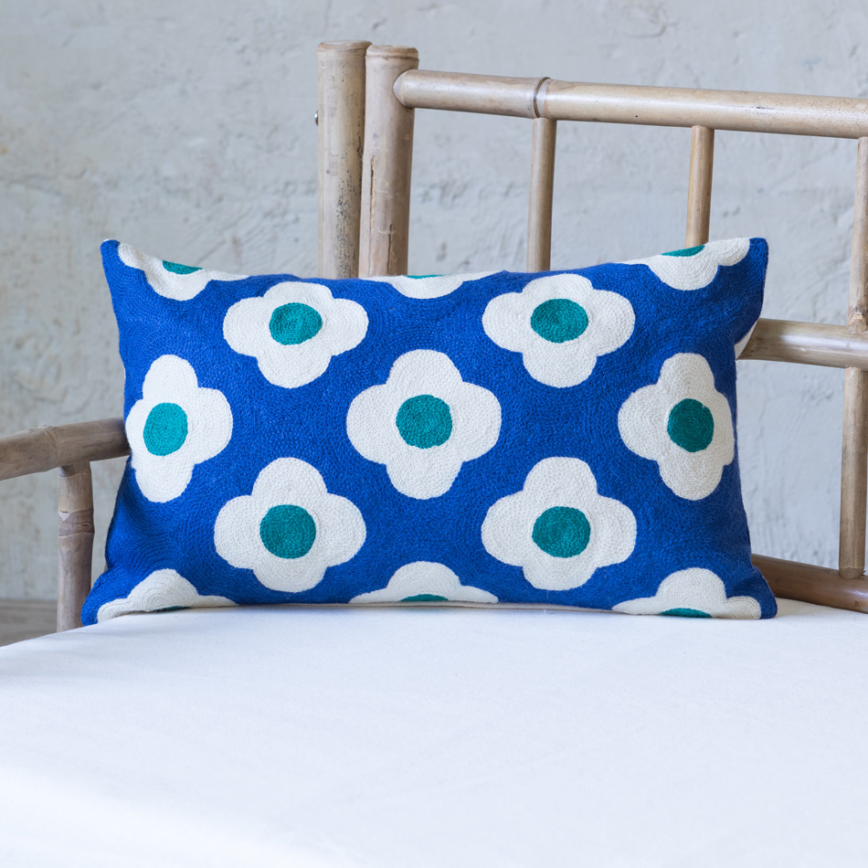 FREYA CHAINSTITCH CUSHION BLUE 40×60