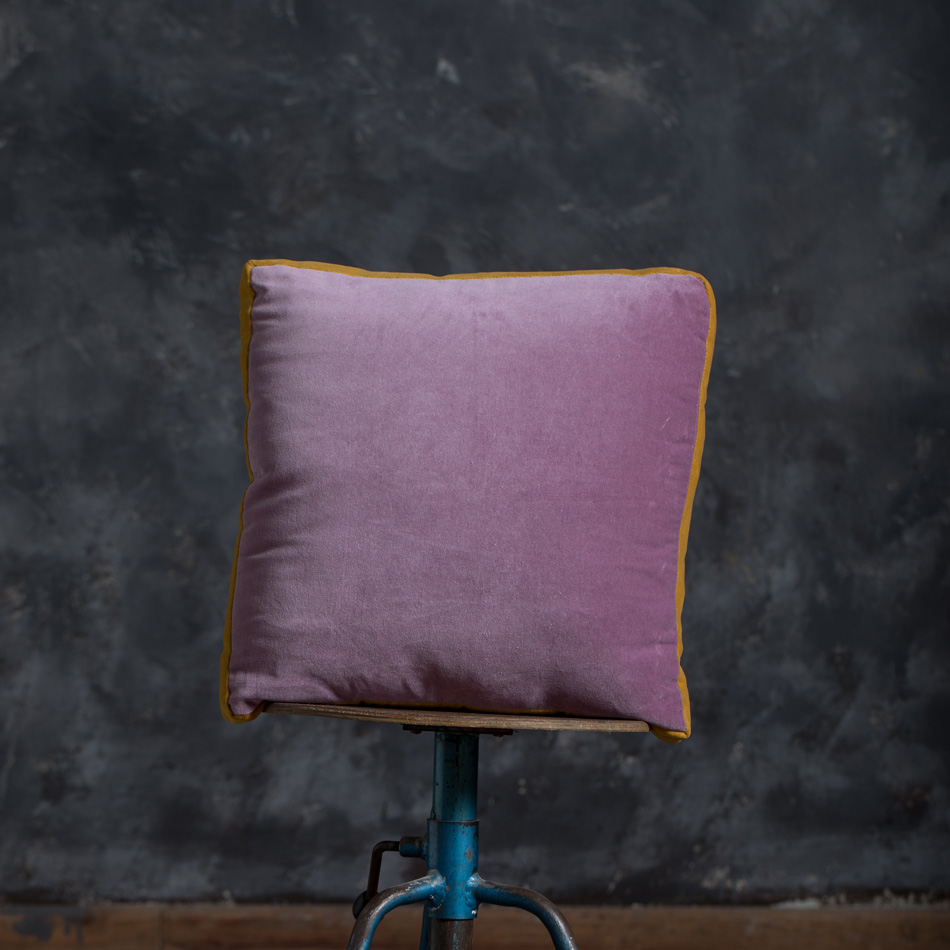 MAUVE BICOLOR TRIM VELVET CUSHION 45X45