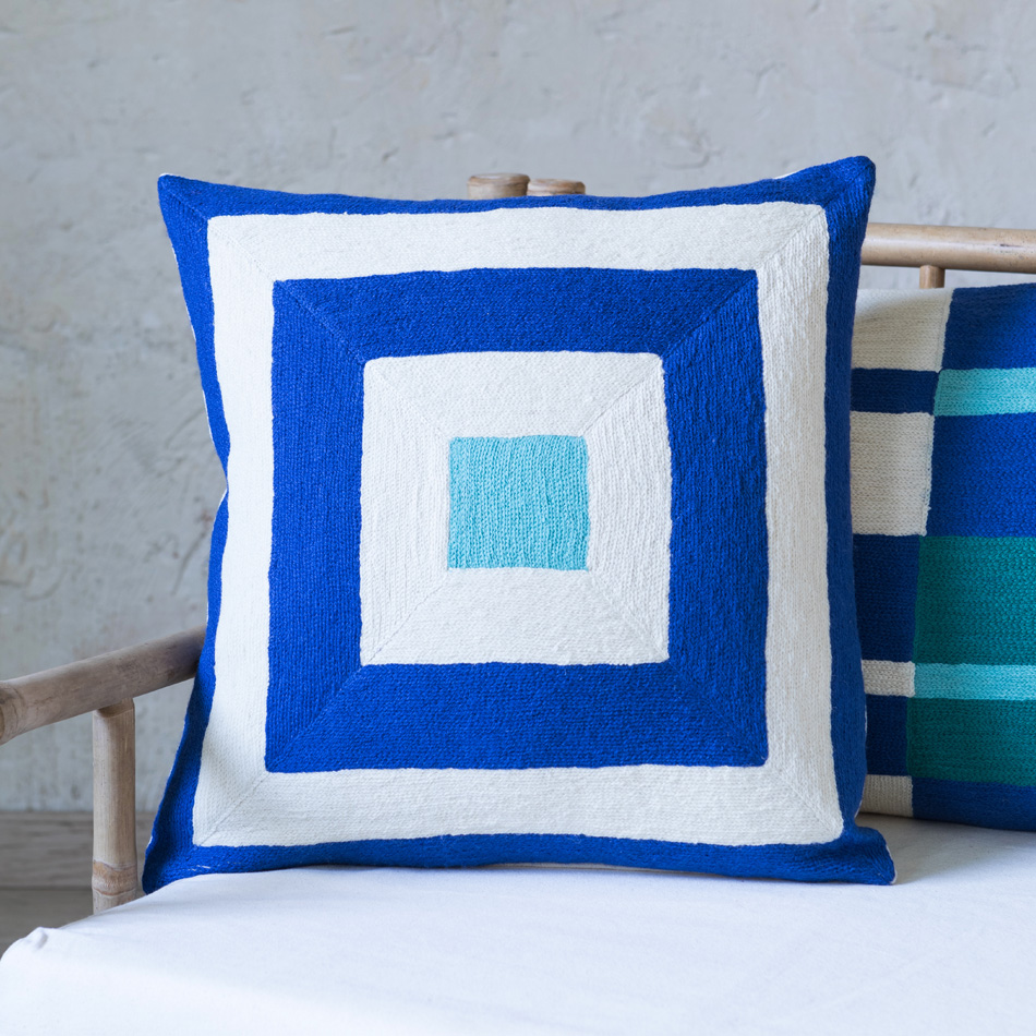 WALDO CHAINSTITCH CUSHION BLUE 45×45