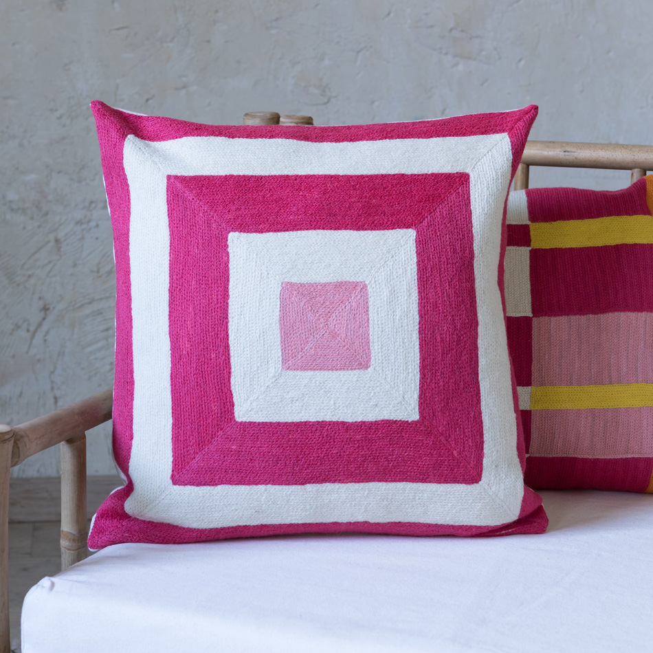 WALDO CHAINSTITCH CUSHION FUCSIA 45×45