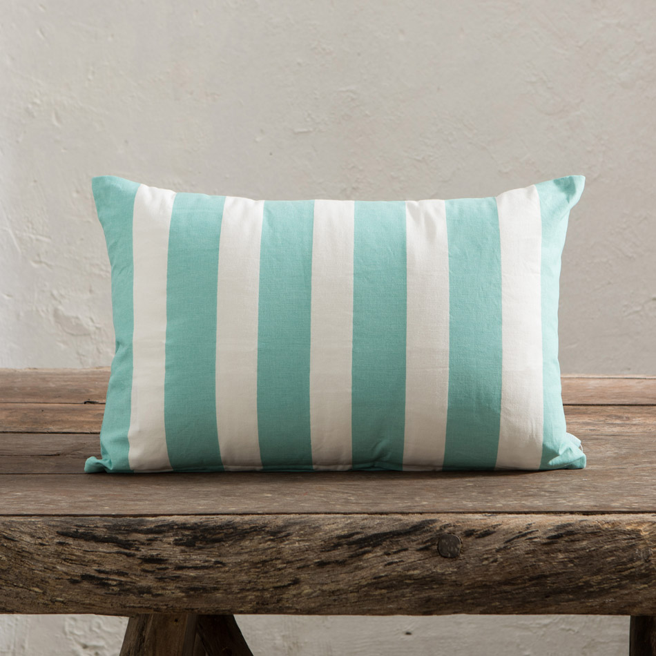CAPRI STRIPE AND PLAIN AQUA CUSHION 40×60