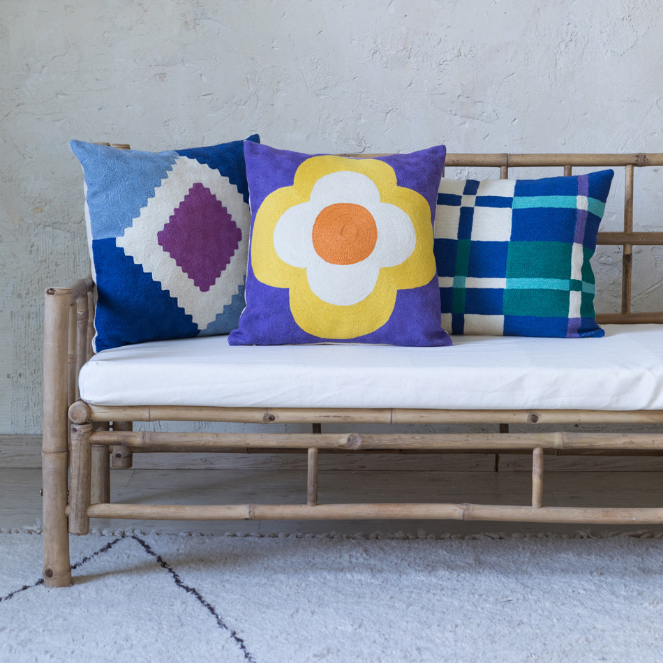 AGNES CHAINSTITCH CUSHION BLUE 45×45