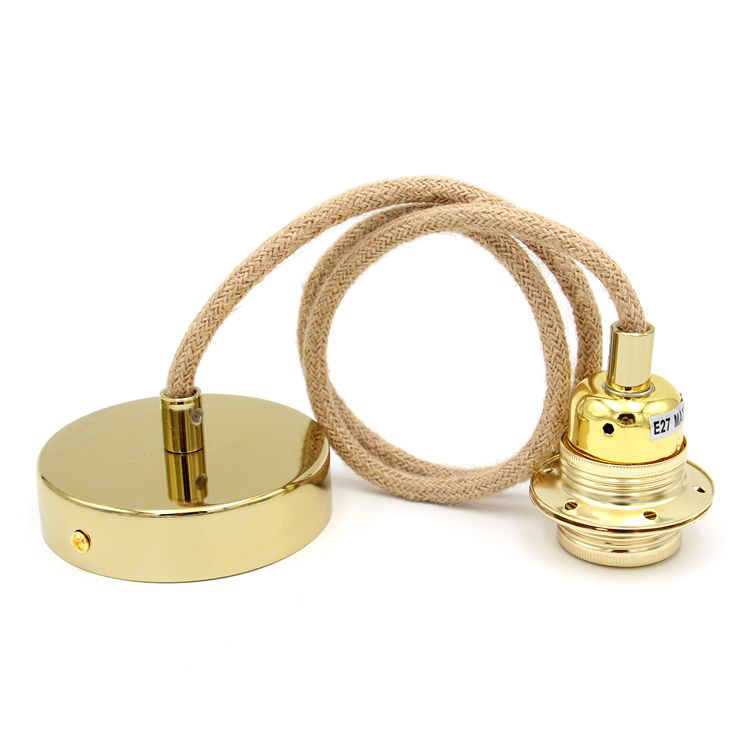 Includes electric kit: 1.5m of braided jute cable, white E27 lamp holder and white ceiling rose. Does not include bulb. Max 15W LED bulb is recommended.