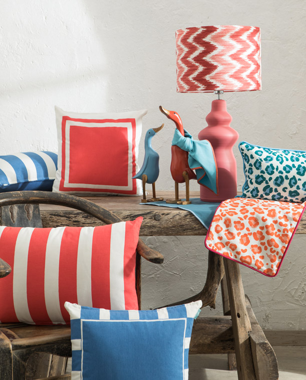 Cushion printed with the technique of manual screen printing on 100% cotton. Inspired by the Italian Amalfi coast, these cushions with their fresh, bright colors and striped patterns will create a summer atmosphere in any space.