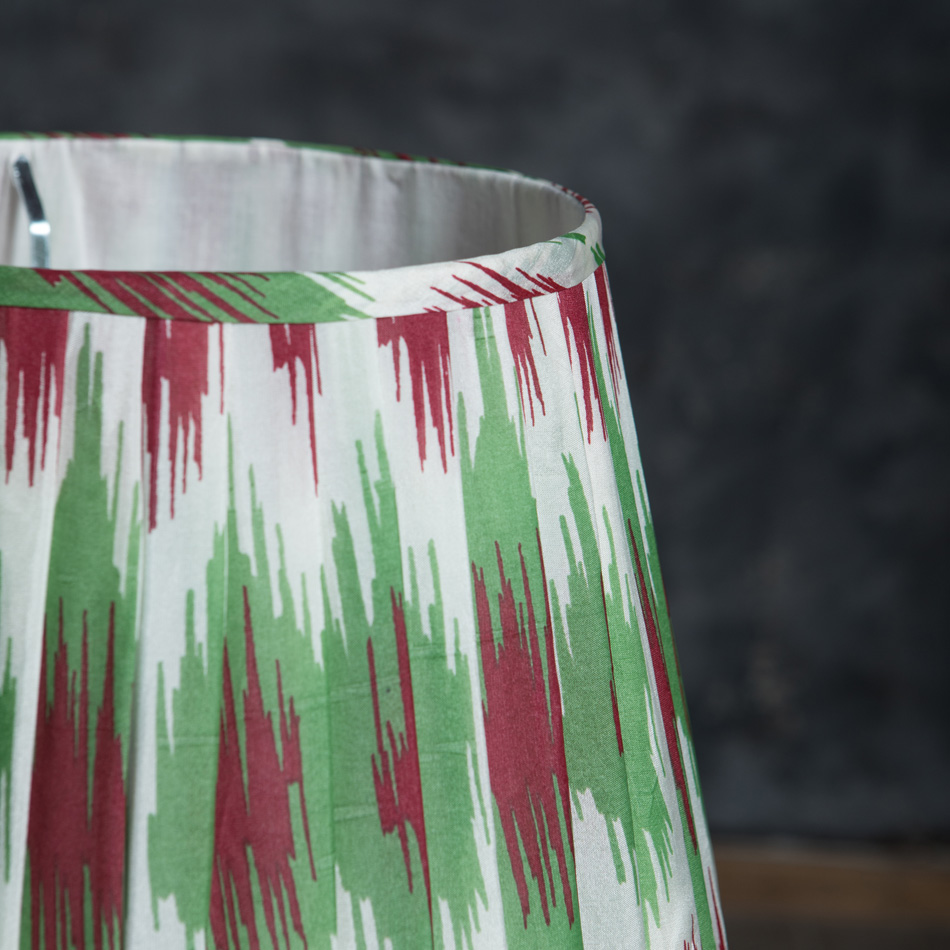 IKAT GREEN BURGUNDY PLEATED LAMPSHADE