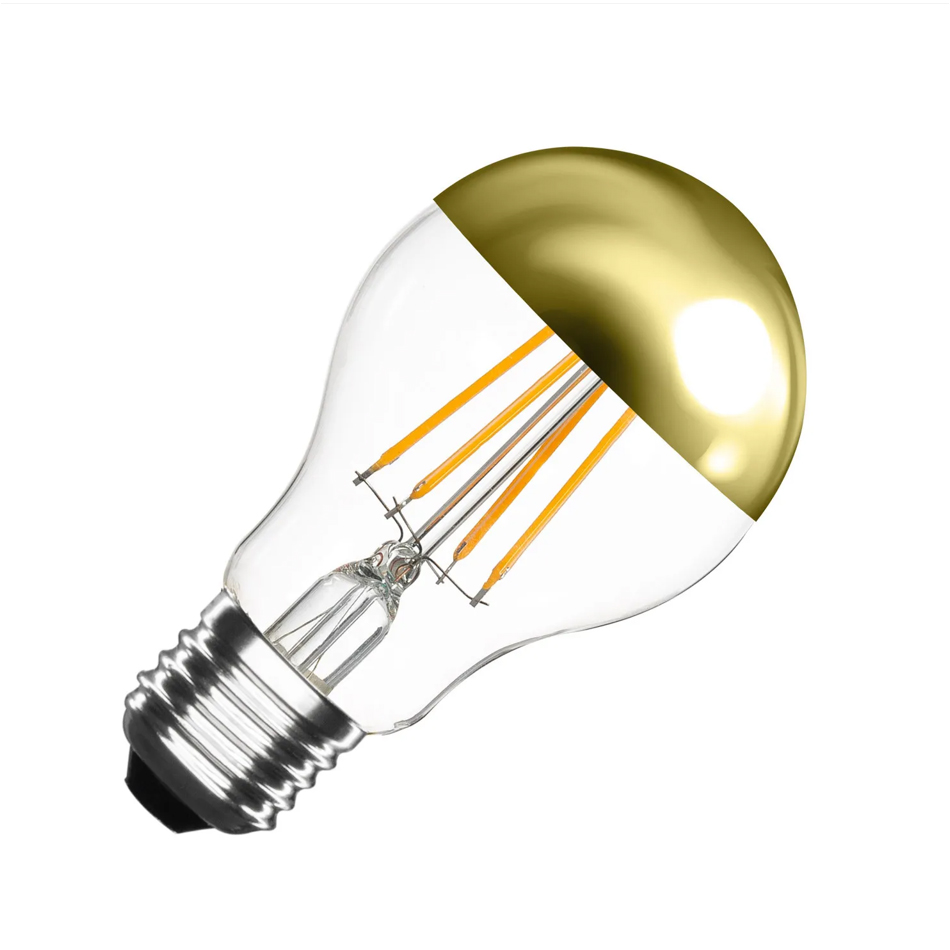 E27 Dimmable Filament Gold Reflect A60 6W Transparent LED Bulb.