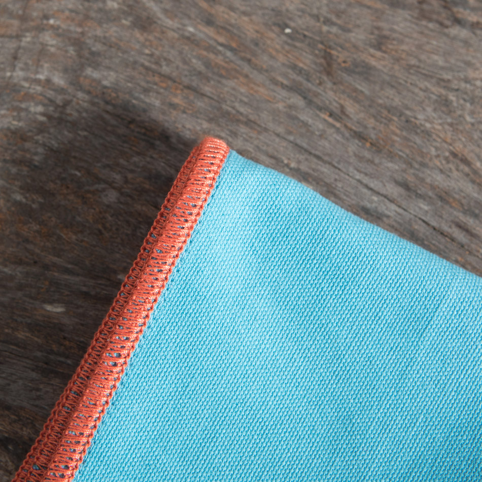 LIGHT BLUE NAPKIN ORANGE STITCH EDGE 45×45