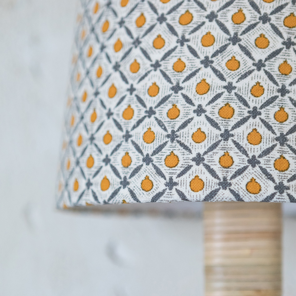 Linen wall lampshade in mustard gray tone. This lampshade offers a warm and soft light as an auxiliary light for any space.