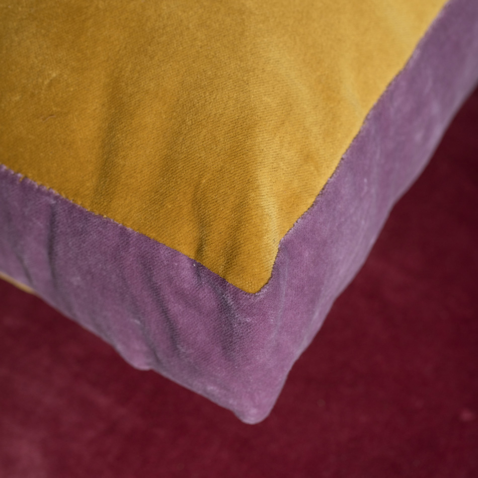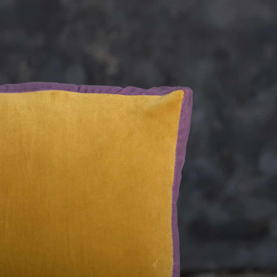 MUSTARD BICOLOR TRIM VELVET CUSHION 40X60