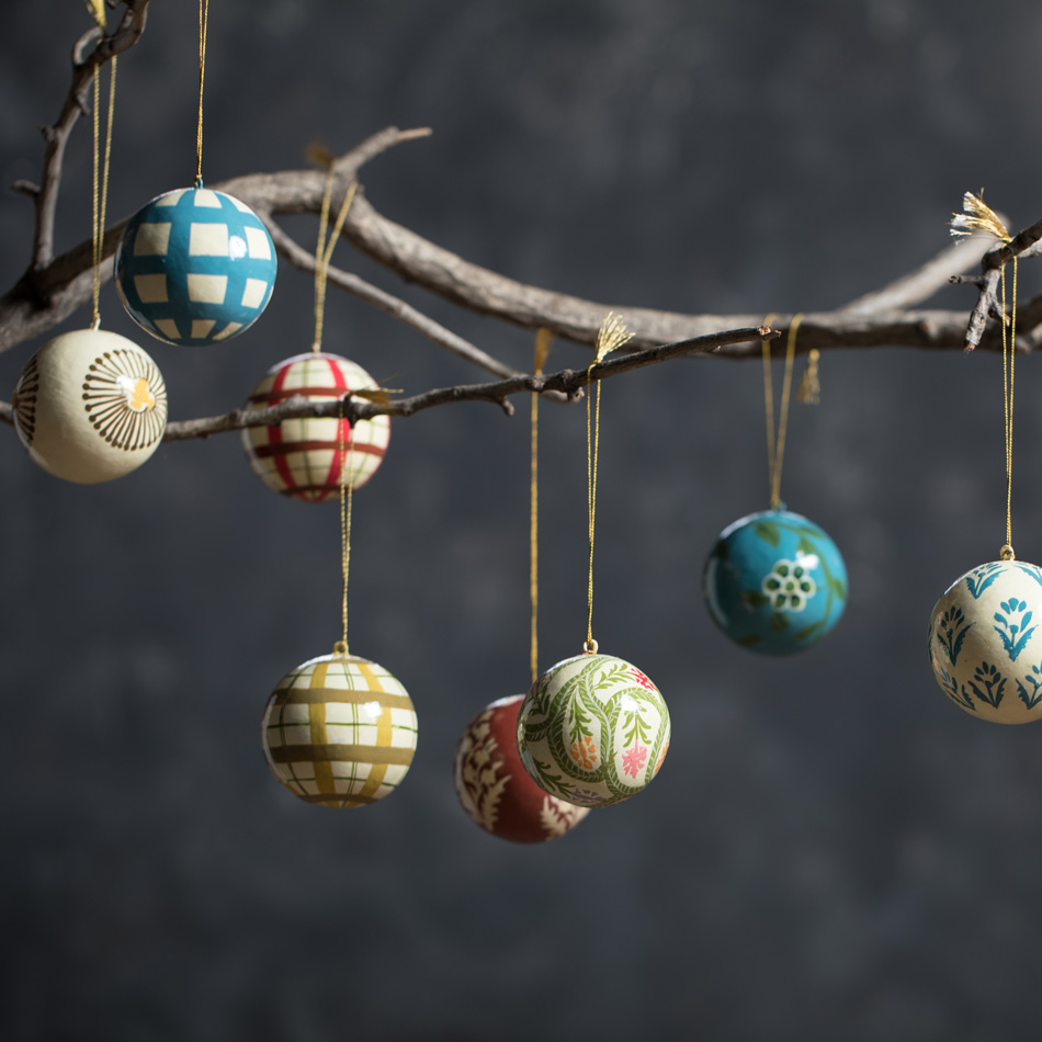 PAPIER MACHE CHRISTMAS BALLS SET 4 BLUE