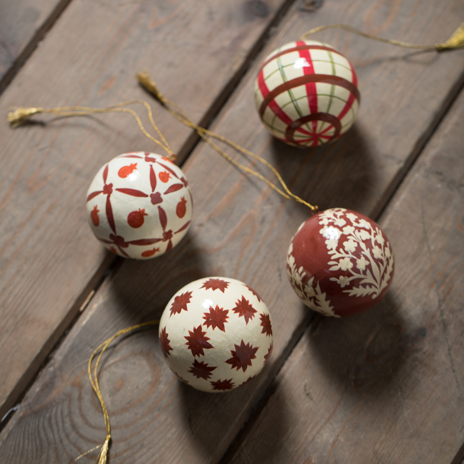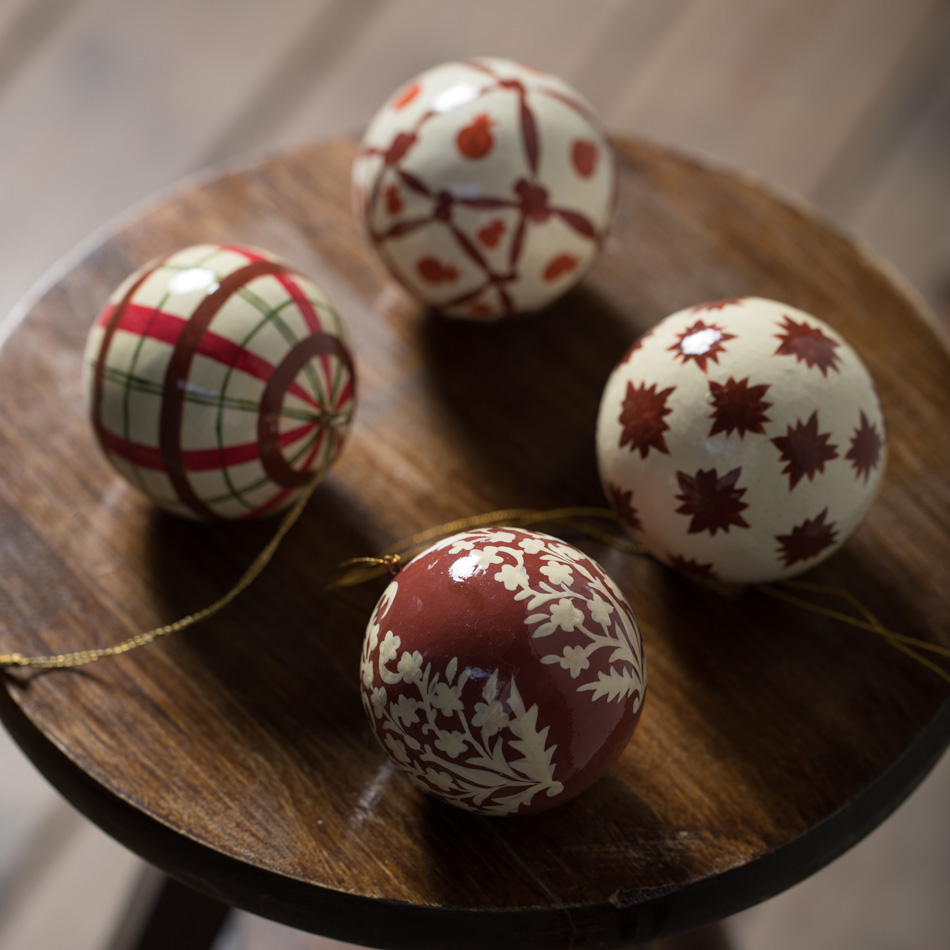 PAPIER MACHE CHRISTMAS BALLS SET 4 RED