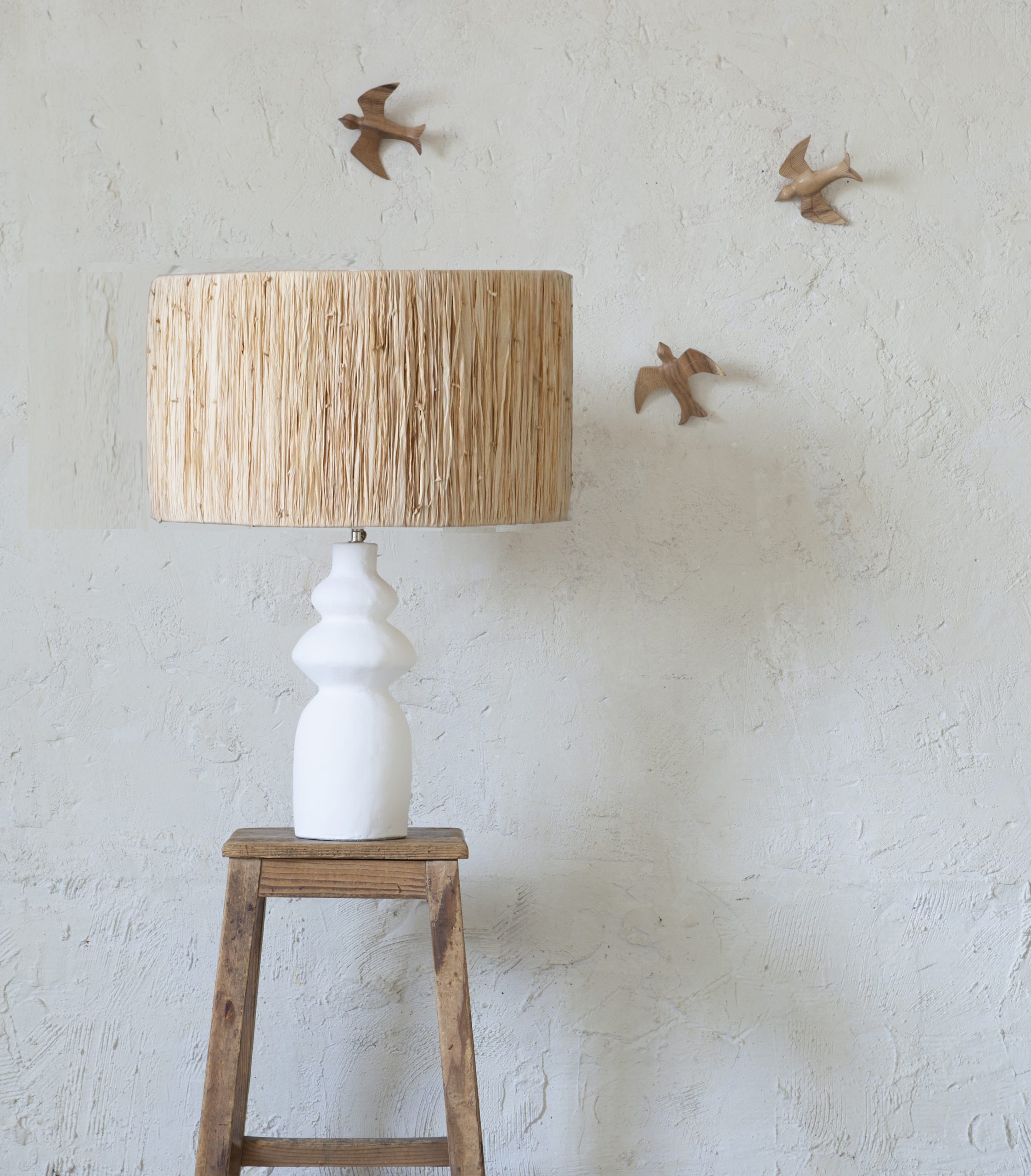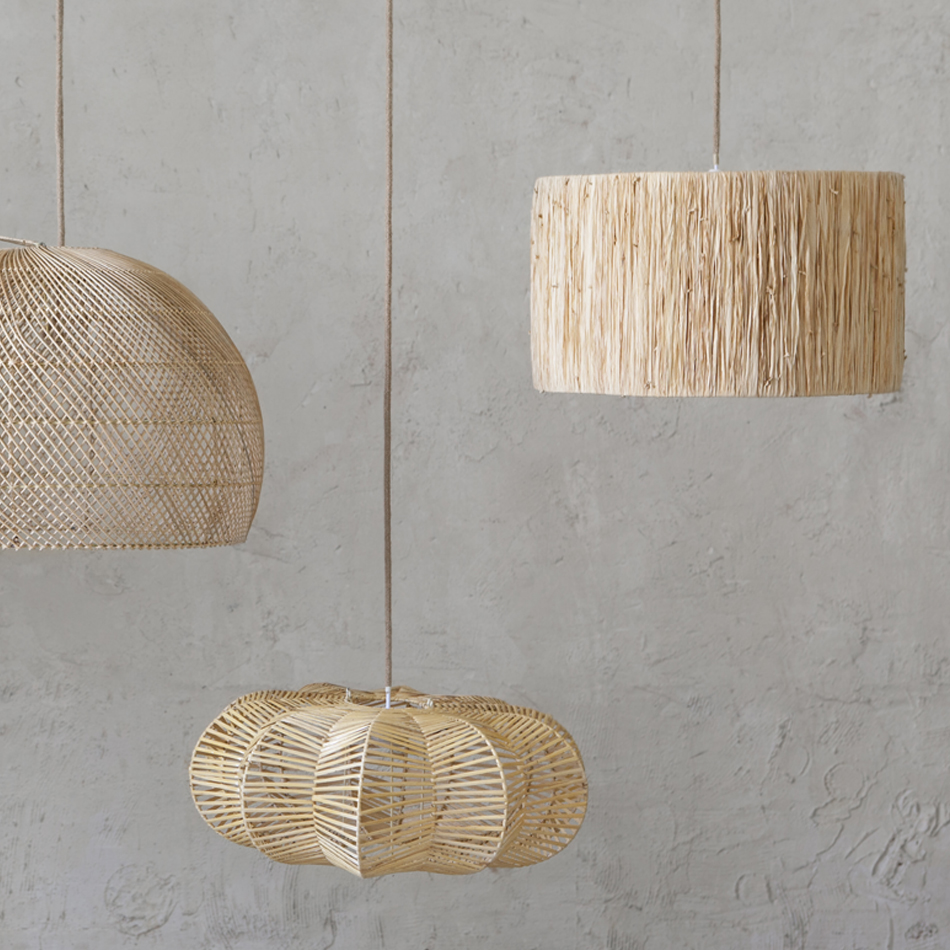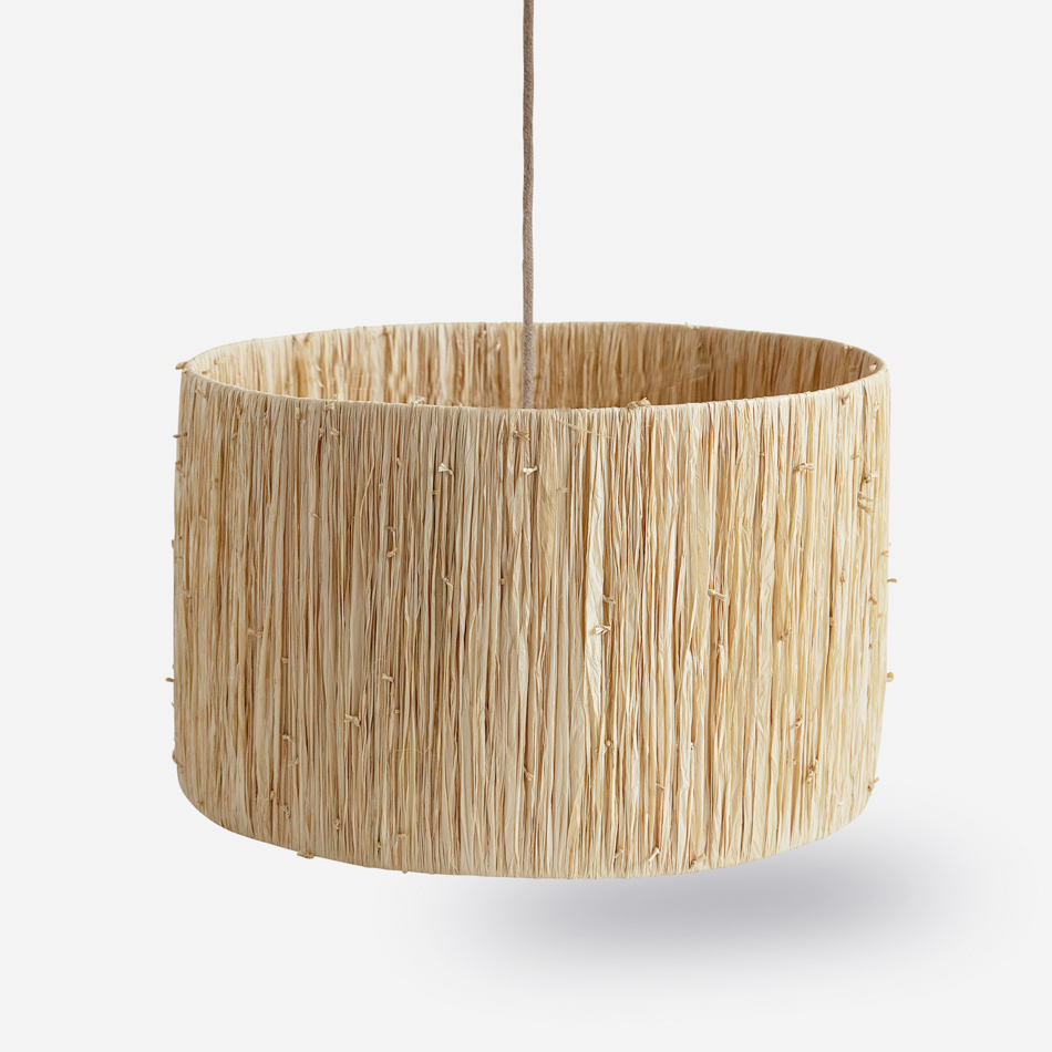Raffia lampshade woven by hand, its natural style offers a warm touch to any space (living room, bedroom, children’s bedroom, kitchen …) It can be used as a lampshade for a table lamp or as a pendant lamp, complementing it with the Pendant Lamp Kit product.