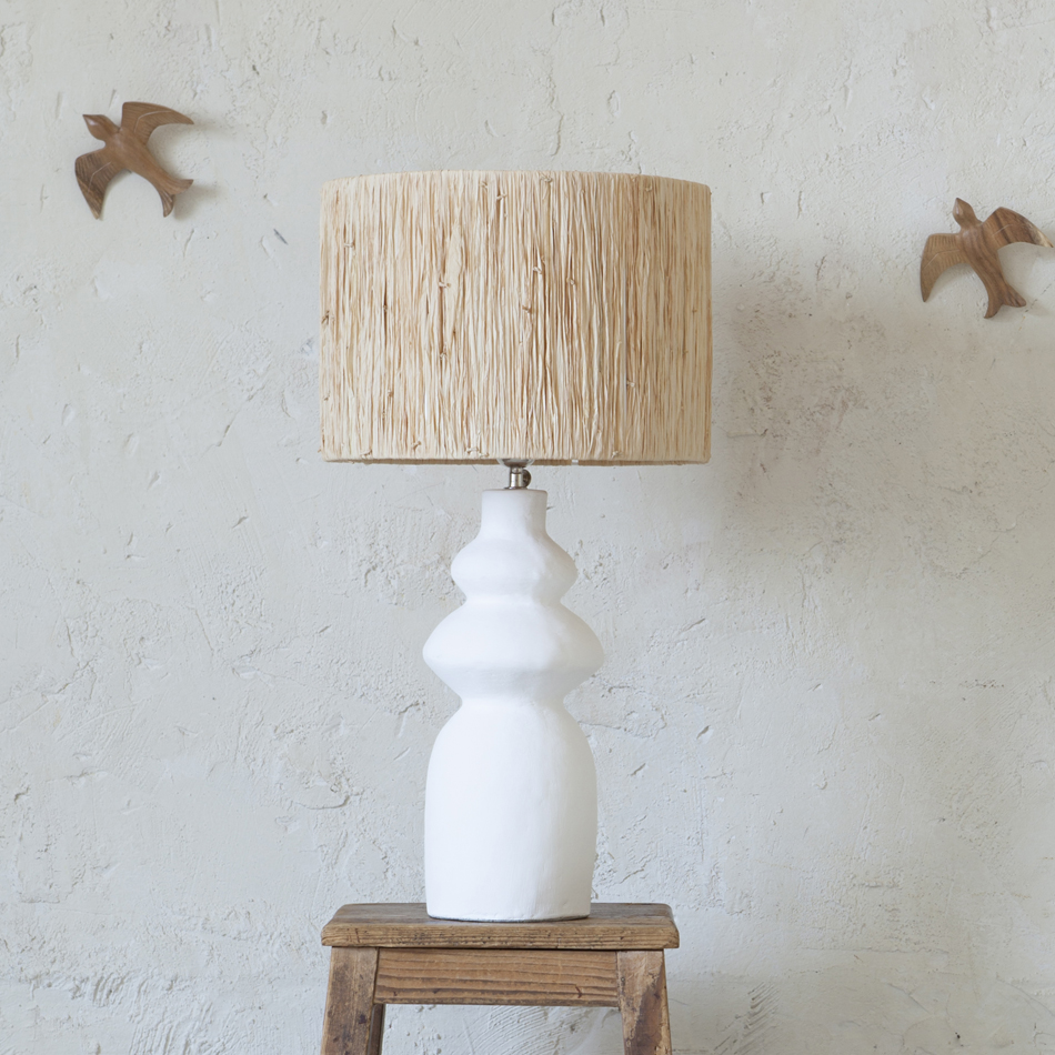 Raffia lampshade woven by hand, its natural style offers a warm touch to any space (living room, bedroom, children’s bedroom, kitchen …) It can be used as a lampshade for a table lamp or as a pendant lamp, complementing it with the Pendant Lamp Kit product.