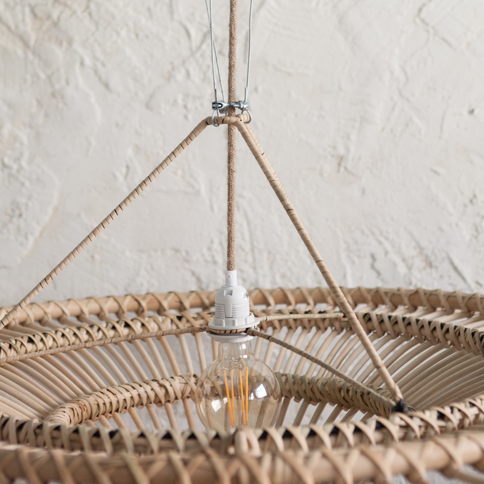 Hand-woven rattan lamp, its natural style offers a warm touch to any space (living room, bedroom, children’s bedroom, kitchen …)