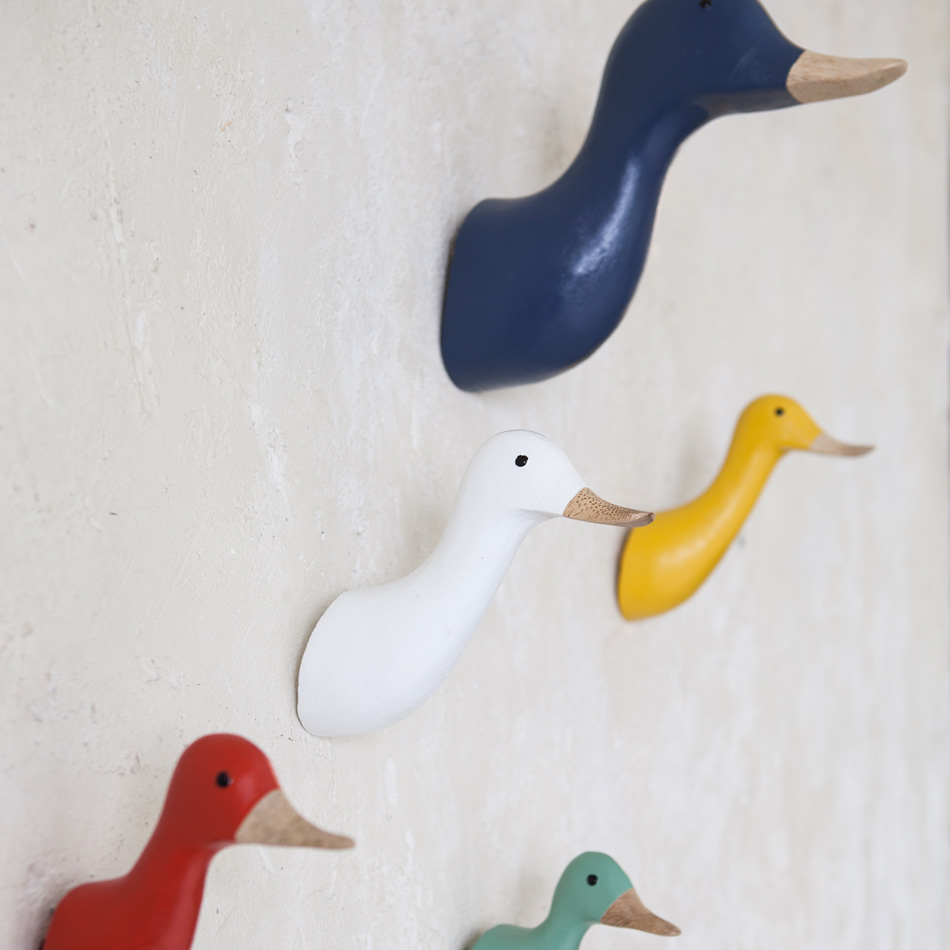 Decorative head wooden duck made and painted. An original and fun decorative element to place in any space as decoration. It can be used also as a hanger for light items. Handcrafted product, small imperfections and variations in measurements and color can be found.