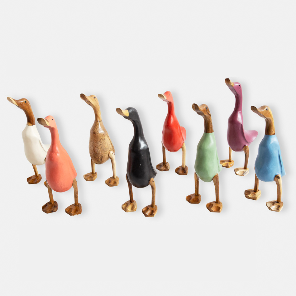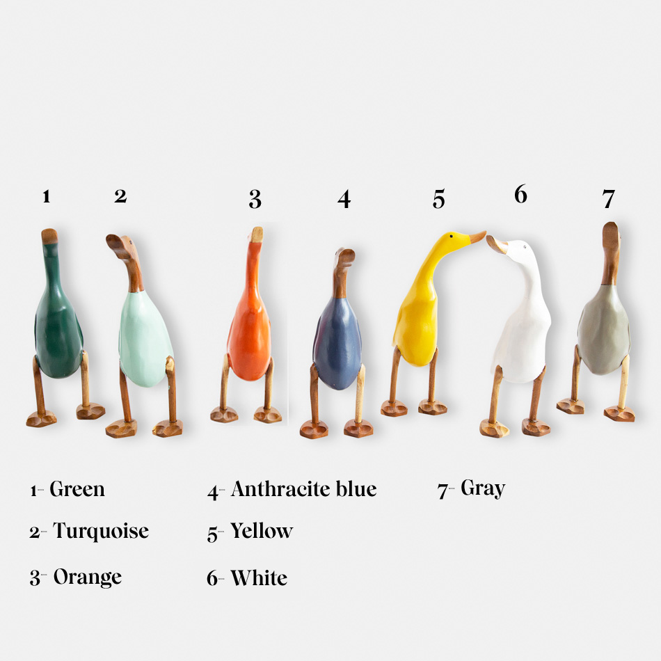 Decorative wooden ducks made and painted by hand using bamboo and wood. An original and fun decorative element to place in any space. Handcrafted product, small imperfections and variations in measurements and color can be found.