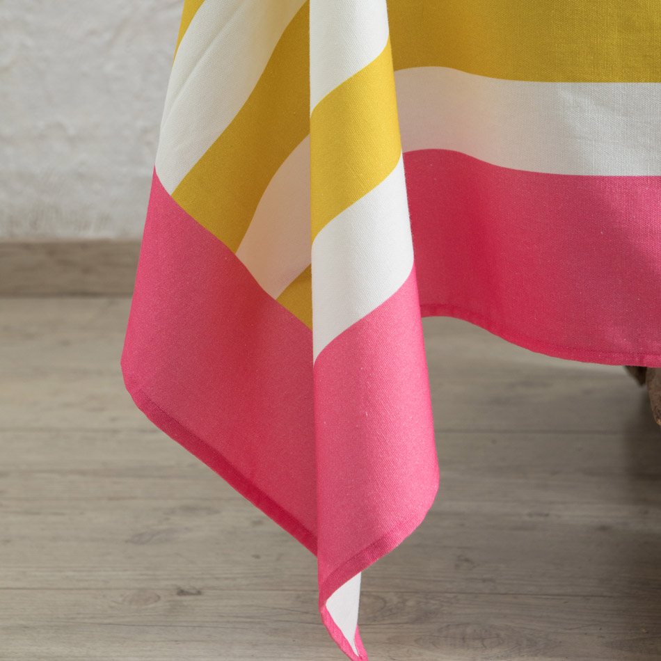 Stripes are always a win. Dress your table with bright color stripes and create an elegant and happy “Dolce Vita” italian ambiance. It can also be used as a throw, plaid or bed cover. Available in two sizes.